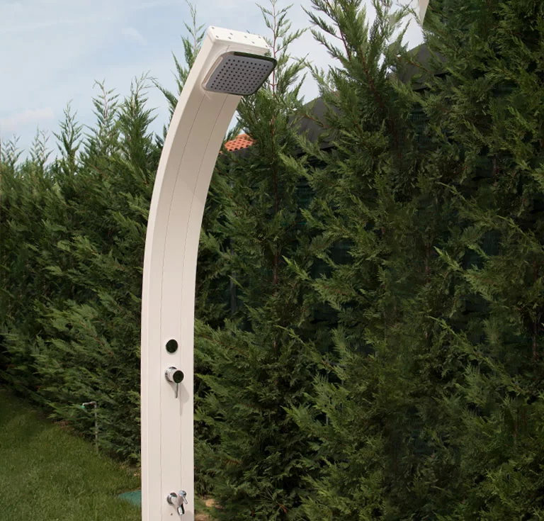 La doccia è un importante complemento d’arredo che sa valorizzare la piscina esterna. E’ un accessorio davvero funzionale, che consente di togliere residui di cloro o crema e di rinfrescarsi dal caldo senza entrare in acqua. Acquaform propone grandi possibilità di scelta, personalizzandola nelle forme e nei colori, per far sì che si integri perfettamente al giardino.