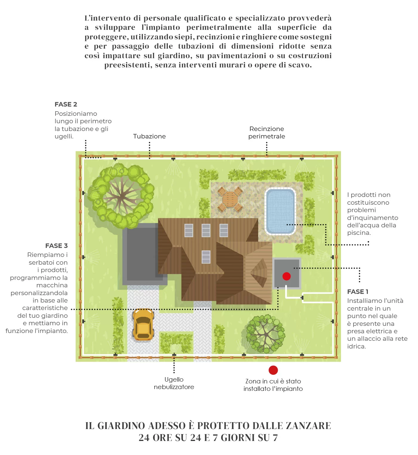 La migliore ed efficace soluzione per liberare il tuo giardino dalle zanzare, definitivamente. Grazie ad una barriera perimetrale che impedisca alle zanzare di entrare nell’area e che allontani quelle già presenti.