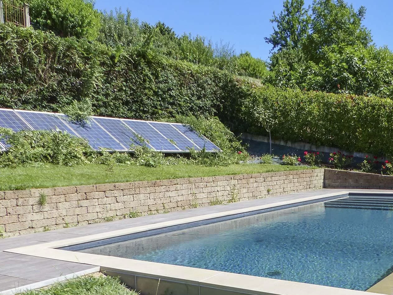 La tecnologia solare permette di riscaldare la piscina sfruttando l’energia rinnovabile del sole. L’acqua della piscina viene spinta dalla pompa di circolazione ai pannelli solari, dove viene riscaldata dai raggi solari e viene quindi reimmessa in piscina ad una temperatura maggiore.